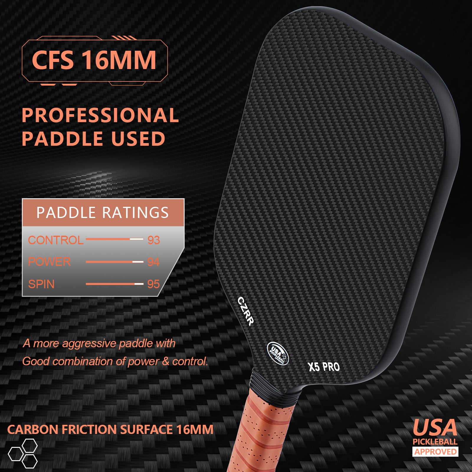 - 【USA Pickleball Approved】 Our pickleball racquets are USAPA approved for international championship pickleball competitions. If you're enjoying the sport and want to take your game to the next level by competing in tournaments. The packaging contains accessories: a CZRR pickleball paddle, a waterproof bag (This product is not equipped with a pickleball).