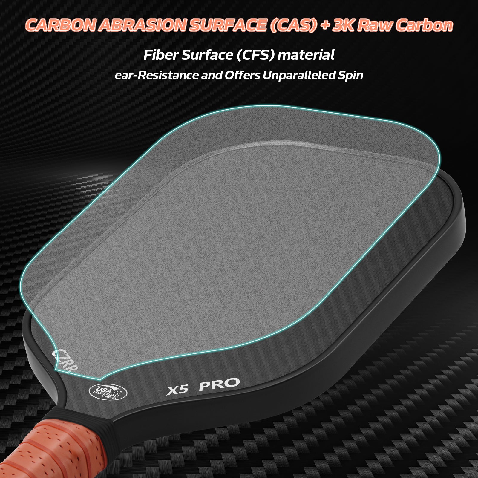 - 【CARBON ABRASION SURFACE (CAS)】 Advanced Based CARBON ABRASION SURFACE (CAS) + 3K Raw Carbon Fiber Surface (CFS) material, increases its friction, and prolongs the residence time of the pickleball on the racket face, harnessing the raw power with maximum spin & ball control.