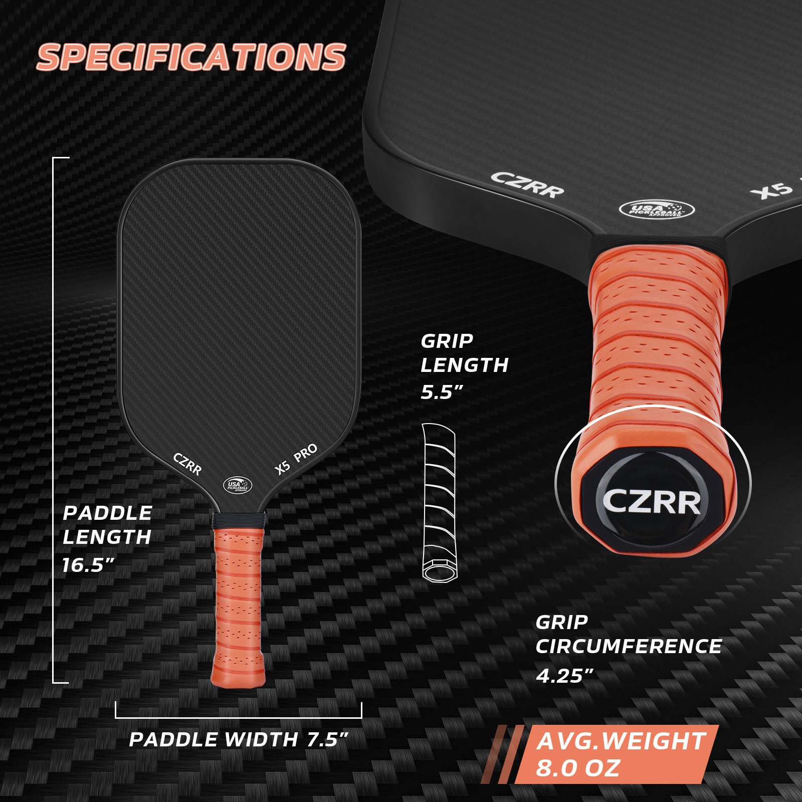 - 【USA Pickleball Approved】 Our pickleball racquets are USAPA approved for international championship pickleball competitions. If you're enjoying the sport and want to take your game to the next level by competing in tournaments. The packaging contains accessories: a CZRR pickleball paddle, a waterproof bag (This product is not equipped with a pickleball).